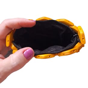 Bolsa de Madeira, tipo Carteira, Porta-Moedas, Amarela, com Zíper