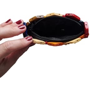 Bolsa de Madeira, tipo Carteira, Porta-Moedas, Colorida, com Zíper