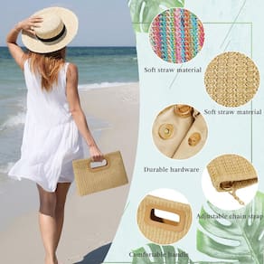 - Eleve o estilo de moda: nossa bolsa de palha com alça superior é um acessório moderno que exala elegância e beleza. Perfeito para dias de praia no verão, férias, casamentos, festas e ocasiões formais e casuais.