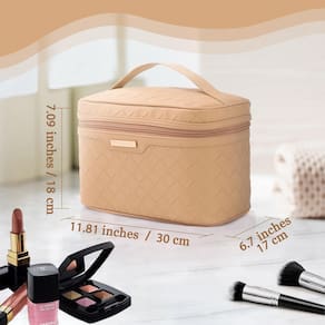 Capacidade ultra grande. Esta bolsa de cosméticos é caracterizada por sua grande capacidade, tamanho espaçoso e prático, que pode acomoda seus vários cosméticos, pincéis e itens de cuidados pessoais. Se utilizado em Em casa ou em viagens, a bolsa de maquiagem feminina é uma excelente escolha. Durável e resistente Nossa bolsa de higiene para mulheres é feita de couro de alta qualidade, impermeável e durável. Seja respingos acidentais de água ou uso prolongado, seus cosméticos podem receber boa proteção. Design exclusivo Nossa bolsa organizadora de cosméticos tem uma variedade de designs internos, incluindo seis peças de corda elástica, duas Bolsos de malha e uma bolsa elástica, conveniente para você armazenar cosméticos por categoria. nosso A bolsa organizadora de maquiagem é projetada com um espaço de pincel independente que pode acomodar vários Tamanhos de pincéis de maquiagem, e está equipado com uma capa transparente antiderrapante para mantê-lo limpo e seguro. Viagem portátil Nossas bolsas de maquiagem para viagem têm portabilidade e armazenamento, facilitando a organização de cosméticos e Produtos de cuidados com a pele de maneira organizada, esteja você no avião, no trilho de alta velocidade ou em um quarto de hotel, você pode facilmente carregar esta bolsa de maquiagem, disponibilizando seus cosméticos a qualquer momento. Moderno e prático Esta bolsa de cosméticos grande não é apenas prática, mas também lindamente projetada. Sua aparência minimalista e detalhes delicados mostram um estilo moderno e elegante, adequado para mulheres mostrarem suas gosto pessoal e estilo moderno. - Bolsa de maquiagem de grande capacidade: o tamanho da bolsa organizadora de maquiagem é de 30 x 18 x 17 cm, que é profunda o suficiente para colocar sua garrafa com segurança na vertical. A bolsa de cosméticos grande pode acomodar seus cosméticos de tamanho normal, mantendo sua mesa arrumada e tornando sua viagem mais conveniente - Moderna e resistente: esta bolsa de maquiagem grande é feita de couro PU de alta qualidade e tem excelente durabilidade, resistência à água, permitindo que você a use por um longo tempo. O design da superfície da bolsa de maquiagem é um padrão de tecido diagonal e está equipado com um zíper de metal suave. Requintado e elegante, mas prático - Design bem organizado: esta bolsa de cosméticos é projetada com uma área especial de pincel de maquiagem com uma capa antiderrapante e transparente. Há um bolso elástico dentro, um design destacável na parte inferior, duas áreas de sombra acima e seis cordas elásticas. Você pode desmontar e instalar a partição de acordo com suas necessidades - Organizador de maquiagem multifuncional: nossa bolsa de maquiagem para viagem pesa apenas 300 g e é projetada com uma alça, tornando-a muito portátil. Seja acampamento, viagens de negócios ou viagens, esta bolsa de cosméticos portátil para viagem é a companhia perfeita (adequada apenas para bagagens maiores que 50 cm). Também pode ser utilizado como bolsa de higiene pessoal, bolsa organizadora de viagem e bolsa de remédios - Escolha de presente perfeita: esta bolsa de maquiagem para mulheres e meninas tem uma aparência elegante e elegante, adequada para todas as mulheres. Seja para namoradas, mães ou amigas, é a escolha perfeita para presente. Seja Natal, Ano Novo, Dia dos Namorados, Ação de Graças ou aniversário, a bolsa de cosméticos para mulheres sempre será um presente encantador