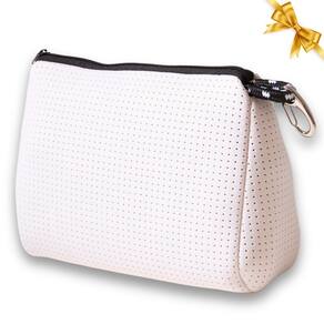 - Cores pop-up – Bolsas elegantes e elegantes com zíper. Esta cor atemporal é uma beleza que combina com tudo. Se você descrever seu estilo como clássico, esta cor da nossa bolsa de maquiagem grande de neoprene é uma obrigação para você.