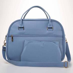 Coleção delicada, pensada para as mães elegantes e que buscam por produtos candy colors. Confeccionada em em material sintético impermeável com textura e toque emborrachado, nas cores , rosa quartz e azul serenity. Forro emborrachado e impermeável. Metais dourados e etiqueta em ouro com resina. Acompanha um lindo pingente tassel com strass. A bolsa maternidade possuí compartimento principal com bolso interno com zíper, dois bolsos amplos para trocas e bolsos laterais para mamadeiras e garrafas, além do bolso posterior externo com zÍper . Possui pezinhos, alças de ombro ajustável e removível. Acompanha trocador coordenado e pingente tassel dourado com strass.
