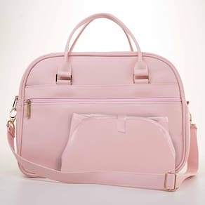 Coleção delicada, pensada para as mães elegantes e que buscam por produtos candy colors. Confeccionada em em material sintético impermeável com textura e toque emborrachado, nas cores , rosa quartz e azul serenity. Forro emborrachado e impermeável. Metais dourados e etiqueta em ouro com resina. Acompanha um lindo pingente tassel com strass. A bolsa maternidade possuí compartimento principal com bolso interno com zíper, dois bolsos amplos para trocas e bolsos laterais para mamadeiras e garrafas, além do bolso posterior externo com zÍper . Possui pezinhos, alças de ombro ajustável e removível. Acompanha trocador coordenado e pingente tassel dourado com strass.