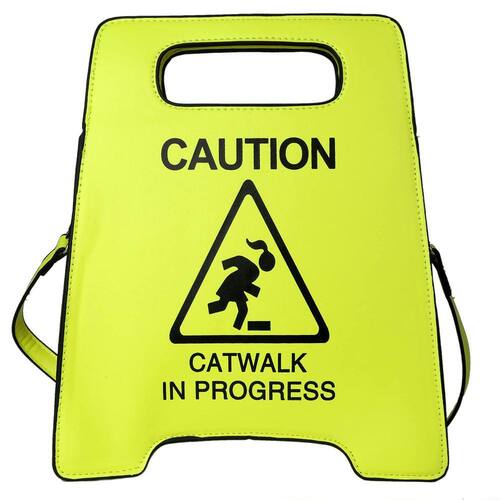 Design exclusivo: material PU, a forma geral do CAUTION. Parece moderno e interessante.