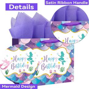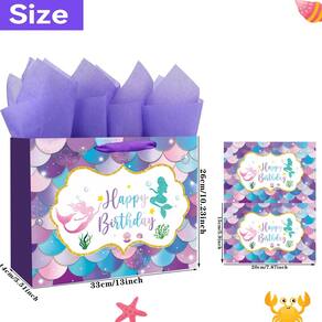 Material: cartolina branca Tamanho: 33* 26* 13 cm Peso: 50 g Quantidade: 10 unidades Material de papelão branco de espessura Feita de papelão branco resistente, esta bolsa de transporte oferece um suporte forte e uma superfície lisa, adequada para roupas, acessórios e itens bem embalados sem perder a forma. Design elegante Mermaid Ocean Impresso com uma encantadora ilustração de sereia e elementos inspirados no oceano, criando uma aparência sonhadora e elegante que agrada a crianças, adolescentes e decorações temáticas de festas. Grande capacidade com alças