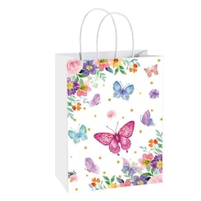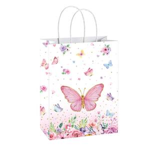 Material: couro bovino branco; tamanho: 22* 16* 8 cm; peso: 17 g; quantidade: 10 peças. Material durável de papel kraft branco Esta sacola de presente é feita de papel kraft branco de alta qualidade, oferecendo uma estrutura leve e resistente que suporta embalagens ecológicas para compras diárias e preparação de eventos. Design fofo de desenho animado de borboleta Com uma encantadora ilustração de borboleta com um estilo divertido de desenho animado, essas bolsas adicionam um toque alegre e decorativo, ideais para festas de aniversário e arranjos de mesa festivos. Alças portáteis confortáveis