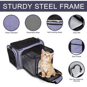 🐾 Respirabilidade e conforto: o design de malha de 5 lados desta bolsa de viagem para animais de estimação oferece bastante respirabilidade e visibilidade em qualquer situação, permitindo que seu animal observe o mundo exterior. Com 3 compartimentos expansíveis, esta transportadora para gatos oferece espaço adicional em 3 lados para que o animal possa se levantar e se virar sem se agachar e se contorcer em almofadas confortáveis removíveis de 3 camadas.