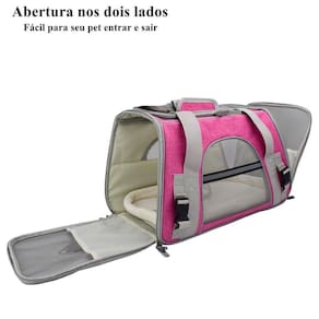 Bolsa transporte pet luxo perfeita para viagens de avião, carro ou passeios. Confortável tanto para o dono carregar quanto para o animal de estimação que viaja no conforto. Esta bolsa de transporte para cães e gatos é produzida em nylon oxford e poliéster taffeta, materiais de alta qualidade e resistência. É uma bolsa pet impermeável de fácil limpeza e manutenção. Esta bolsa de viagem pet possui alça fixa e alça removível, acompanha também uma almofada confortável, além de ter telas de ventilação na parte da frente, de trás, nas laterais e em cima, o que garante um ambiente agradável e arejado ao seu pet. Além disso, esta bolsa de pet possui alguns diferenciais importantes, tem abertura dos dois lados permitindo que o pet entre e saia com facilidade, possui alça na parte de trás que encaixa perfeitamente com as alças da mala do dono podendo carregar tudo junto, possui 2 fivelas na parte de trás para engatar com o cinto de segurança do carro importante para viagens terrestres, possui abertura com zíper na parte de trás se caso o dono desejar dar um biscoito ou carinho ao seu amigo durante a viagem sem ter que remove-lo da bolsa, vem com um gancho de segurança em metal para anexar a coleira, possui tiras reflexivas ao seu redor que iluminam a noite permitindo que o dono visualize bem a bolsa, dispõe de fechos e ganchos de metais resistentes e é uma bolsa dobrável e prática de guardar. Vale ressaltar que as medidas desta bolsa pet são aceitas pela maioria das companhias aéreas.