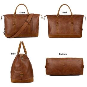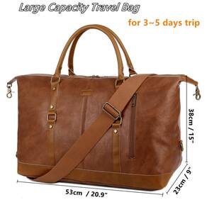 Bolsa de Viagem Masculina Clássica de Couro, BAOSHA, Marrom - Branco - Regulável