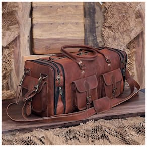 Bolsa de Viagem Masculina Clássica de Couro, C CUERO, Marrom - Branco - Regulável