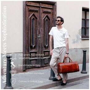SACOLA QUE FAZ UMA DECLARAÇÃO você sabia que tem apenas 7 segundos para causar uma primeira impressão E cada detalhe é importante esta bolsa de viagem de couro atraente o ajudará a virar as cabeças e pegar os COMPLIMENTOS, fazendo você se sentir mais confiante e bonito Feito para durar nossas bolsas são feitas à mão na Itália, usando segredos de artesanato transmitidos de geração a geração. Hardware de latão, forro resistente a rasgos, zíperes YKK dedicação e ATENÇÃO AO DETALHE é o que garante um visual incrível de um acessório de couro de qualidade DESIGNADA PARA CONFORTO a bolsa possui vários bolsos internos e externos, abertura ampla, alça de ombro acolchoada, comprimento ajustável e pés de metal na parte inferior. Tamanho perfeito como bagagem de mão para viajar com estilo. DIMENSÕES Altura 10,63 pol. Comprimento 20,08 polegadas Largura 11,02 dentro Comprimento da queda do ombro 17 19,7 pol. 43 Peso 4 lb 09 onças 1,850 kg UM DO TIPO a mochila é feita de couro de couro de flor integral, que é tingido à mão usando o método de curtimento vegetal. Essa técnica artesanal mantém a aparência natural do couro, deixando cada peça com um padrão ligeiramente diferente. Portanto, haverá apenas uma bolsa como a sua no mundo Marca: Não Informado