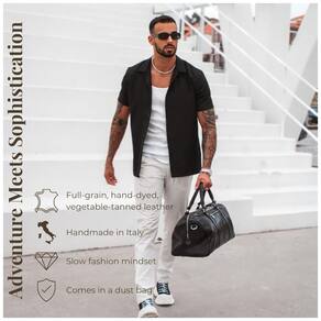 BOLSA QUE FAZ UMA DECLARAÇÃO você sabia que tem apenas 7 segundos para causar uma primeira impressão E todos os detalhes são importantes esta atraente bolsa de viagem de couro ajudará você a chamar a atenção e receber os ELOGIOS, fazendo você se sentir mais confiante e bonito FEITO PARA DURAR nossas bolsas são feitas à mão na Itália usando segredos artesanais transmitidos por gerações. Hardware confiável, forro resistente a rasgos, zíperes YKK dedicação e ATENÇÃO AOS DETALHES é o que garante a aparência incrível de um acessório de couro de qualidade UM DO TIPO a mochila é feita de couro de flor integral, que é tingido à mão usando o método de curtimento vegetal. Essa técnica artesanal mantém a aparência natural do couro, deixando cada peça com um padrão ligeiramente diferente. Então haverá apenas uma bolsa como a sua no mundo PROJETADA PARA CONFORTO a bolsa possui vários bolsos internos e externos, alça de ombro acolchoada, ajustável em comprimento e pés de metal na parte inferior. Tamanho perfeito como bagagem de mão para viajar com estilo Marca: Não Informado
