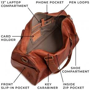 ESTILO VINTAGE. Esta bolsa de viagem grande adiciona elegância retrô a todas as situações. Os 1.8 metros de metal protegem sua bolsa do desgaste. Usamos apenas zíperes YKK 100 metálicos, com elegantes puxadores da marca Berliner Bags. Carregue o pelas alças resistentes ou pendure o no ombro com a alça destacável Como presente especial incluímos uma etiqueta de bagagem em pele genuína, para que possa personalizar a sua mala e manter os seus pertences s. COURO CURTIDO VEGETAL. A bolsa noturna Oslo é feita à mão com couro curtido vegetal de alta qualidade. O curtimento vegetal é um antigo processo de curtimento natural que utiliza taninos e óleos vegetais sem produtos químicos nocivos. Devido a este processo de produção, cada mochila é à prova dágua e tem uma cor única e acabamento vintage. Em vez de secar ou desgastar, o couro curtido com vegetais amacia e cria uma bela pátina ao longo do tempo. MANTENHA SE ORGANIZADO. O compartimento para sapatos útil e durável de Oslo o torna perfeito para a academia ou aventuras de fim de semana. Com o espaçoso compartimento central da Oslo, bolso para tablet de , bolso para telefone e porta chaves, você estará totalmente preparado para qualquer situação. Este fim de semana inteligente também possui um porta cartões especialmente projetado, porta canetas e um bolso interno com zíper que o manterá organizado em movimento Marca: Não Informado