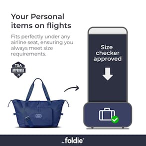- ? BAGAGEM DE MÃO ADEQUADA PARA AVIÕES: O Foldie foi projetado para atender a todos os requisitos de bagagem de mão das companhias aéreas. Economize seu dinheiro e pare de pagar mais pela bagagem de mão, ela se encaixa perfeitamente no tamanho de item pessoal de 18 x 14 x 8 polegadas da Spirit Airlines & Frontier Airlines. Basta levar sua maleta no próximo voo e colocá-la embaixo do assento à sua frente.