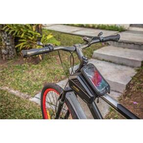 Destaques: Bolsa resistente à água (impermeável). Possui compartimento para celulares de até 6,5 e visor sensível ao toque, saída para fone de ouvido, 7 compartimentos no total e sistema de fixação através de cintas com sistema fixa fácil.