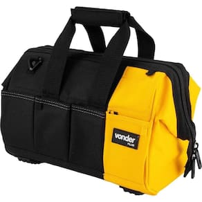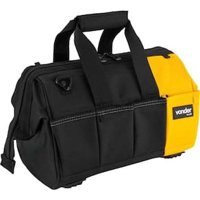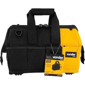 Destaques: Confeccionada em lona reforçada, com reforço metálico na parte superior, alças para transporte reforçadas, zíper duplo reforçado, fundo e laterais com plástico reforçado. Conta com 4 apoios plásticos na base. Possui abertura total e 32 divisões/bolsos, sendo 28 internos e 4 externos.