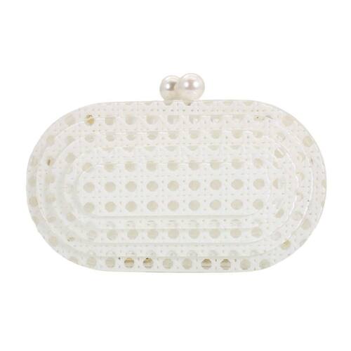 PENGZHI Bolsa feminina de acrílico em vime de vime para noite, bolsa de ombro para festa de casamento, verão, praia, vime, bolsa de ombro, Branco