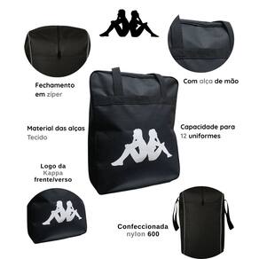 Bolsa Porta Uniforme Kappa, desenvolvida para oferecer praticidade e organização no transporte do seu uniforme esportivo. Compacta e funcional, conta com design moderno e acabamento resistente, garantindo durabilidade no dia a dia. Ideal para levar uniformes de treino, jogos ou atividades esportivas, mantendo tudo em ordem com o estilo autêntico da Kappa.