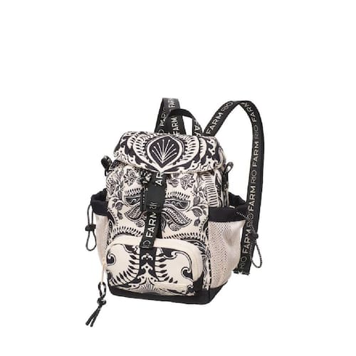Bolsa Farm Pipoquinha Passeio de Rio Coleção confeccionada em poliéster e Estampado, logo em patch emborrachado, Puxadores de metal colorido e forro de Nylon personalizados. Alças de gorgurão. Mochilas com costas em espuma Personalizada com pespontos e alça Com compartimento para cartão. Verão 2025 Bolsa Pipoquinha 18 x 9 x 25 cm