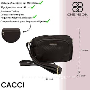 Sua alça ajustável de cento e quarenta e dois centímetros permite diferentes formas de uso, garantindo conforto e versatilidade. Uma bolsa leve, elegante e prática, perfeita para acompanhar rotinas dinâmicas com o toque de estilo que só a Chenson oferece.