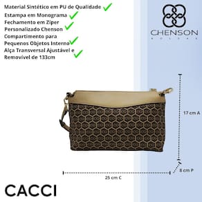 A Bolsa Feminina Chenson une elegância, praticidade e design moderno em um só acessório. Produzida em material sintético de alta qualidade, apresenta textura suave e durabilidade que acompanha o ritmo do dia a dia. Seu acabamento refinado e o monograma exclusivo da marca reforçam o estilo sofisticado e o cuidado em cada detalhe, tornando-a ideal para compor produções com personalidade.