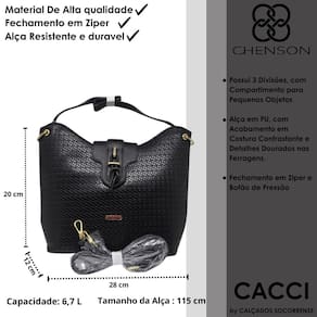 Confeccionada em PU material de excelente qualidade, essa linda bolsa possui amplo espaço compartimento para pequenos objetos. Forro em tecido personalizado com logo Chenson. Fechamento principal com ecler personalizado e botão magnético. Alça em PU com ótimo acabamento em costura contrastante, adicionando um toque de sofisticação, com seus detalhes das ferragens em dourado.