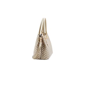 DESCRIÇÃO DO PRODUTO Modelo: Bolsa Feminina Estruturada Marca: Chenson Material: Poliuretano impermeável Cor: Natural Fechamento: Zíper