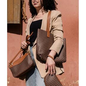 Composição do kit: Bolsa grande modelo shopper Bolsa pequena transversal Nécessaire