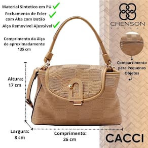 Com um design elegante e funcional, essa bolsa é confeccionada em PU de alta qualidade, garantindo durabilidade e um toque sofisticado. Seu interior contém duas divisões estratégicas, ideais para acomodar pequenos objetos de forma organizada. O forro em tecido personalizado com logotipo Chenson reforça a exclusividade da peça, enquanto o fechamento principal, composto por um ecler personalizado e botão, proporciona segurança e praticidade. A alça em PU para mão apresenta um acabamento impecável com costura contrastante, garantindo charme e conforto no uso. Para um toque final de requinte, as ferragens douradas acrescentam um brilho sofisticado, tornando essa bolsa perfeita para qualquer ocasião.