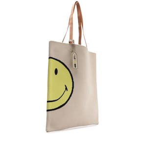 Bolsa Feminina Croche Smiley, Brizza Arezzo.A bolsa bege é produzida em crochê. A peça possui tamanho médio, formato retangular, compartimento interno amplo, tag da marca pendurada na parte frontal da alça, padronagem de smiley na lateral em cores contrastantes, alças de mão fixas e não possui fechamento.Especificações & Cuidados:Material: CrochêCor: BegeMarca: Brizza Arezzo