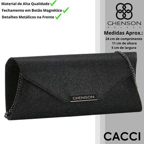 Bolsa Feminina Chenson Linha Bolsa de Festa de Mão. Feito em poliuretano, fechamento por botão magnético, forro em tecido personalizado, compartimento para pequenos objetos. Detalhes metálicos na frente e acabamento em costura contrastante.
