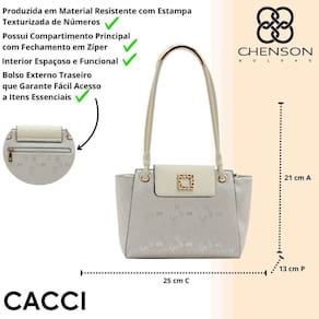 A bolsa feminina Chenson combina design sofisticado com praticidade para o dia a dia. Seu material resistente com estampa texturizada de números traz um toque moderno e exclusivo, ideal para quem busca elegância em cada detalhe. Compacta por fora, mas surpreendentemente espaçosa por dentro, ela é perfeita para acompanhar a rotina com muito estilo.