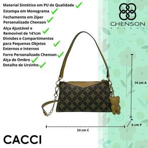 A Bolsa Chenson Feminina é o acessório que combina praticidade, elegância e um toque de charme em cada detalhe. Com design contemporâneo e acabamento impecável, ela foi criada para acompanhar a mulher moderna em todas as ocasiões, oferecendo um visual sofisticado sem abrir mão da funcionalidade. Sua estrutura delicada e estampa em monograma proporcionam um estilo atemporal, ideal para quem busca um acessório que complemente diferentes composições com sutileza e bom gosto.