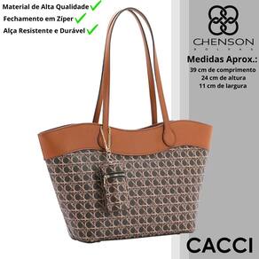 Bolsa Feminina Chenson Linha Monograma Tramas Ombro 3484487 Poliuretano, fechamento com fecho-éclair, forro em tecido personalizado, compartimento para pequenos objetos, amplo espaço, detalhes na frente, alça em poliuretano, acabamento em costura contrastante.