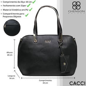 A Bolsa Chenson é linda! Confeccionada em material sintético em PU, com fechamento pratico com duas divisões, bolso interno e compartimento para pequenos objetos, detalhes na frente da alça em PU compartimento para pequenos objetos, forro em tecido personalizado com logo chenson, acabamento em costura contrastante e detalhes, o que deixa o modelo ainda mais bonito.