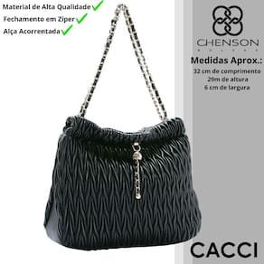Bolsa Feminina Chenson Linha Fashion Matelassê Ombro 3484503 Poliuretano, fechamento com fecho-éclair, forro em tecido personalizado, compartimento para pequenos objetos, amplo espaço, detalhes na frente, alça acorrentada e em Pu, acabamento em costura contrastante.