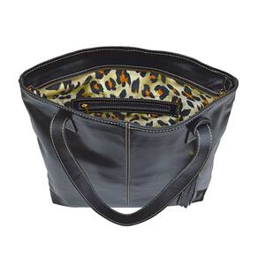 Lindíssima e moderna bolsa de ombro modelo SHOPPING BAG, em couro, com excelente espaço interno, alça confortável, muito prática e fácil de usar, ideal para o dia a dia ou em produções casuais que necessitem de estilo sem abrir mão da elegância. Na parte frontal possui um lindo enfeite com franjas do mesmo couro para dar um charme na sua linda bolsa. Todos os metais são na cor dourada para combinar com a sofisticação e elegância que um produto em couro merece. O acabamento interno é feito com forro de cetim com texturas variadas tipo animal print (padrão oncinha) ou similar, possui um bolsinho interno fechado por zíper de nylon e outros dois abertos para pequenos objetos e celular. O fechamento da parte superior é feito com zíper de metal dourado e na parte externa traseira possui mais um bolso extra fechado por zíper, também em metal dourado, para carregar pequenos objetos.