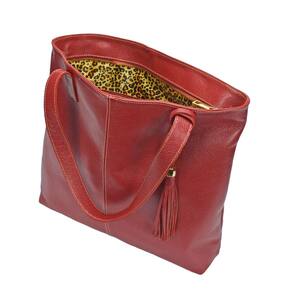Lindíssima e moderna bolsa de ombro modelo SHOPPING BAG, em couro, com excelente espaço interno, alça confortável, muito prática e fácil de usar, ideal para o dia a dia ou em produções casuais que necessitem de estilo sem abrir mão da elegância. Na parte frontal possui um lindo enfeite com franjas do mesmo couro para dar um charme na sua linda bolsa. Todos os metais são na cor dourada para combinar com a sofisticação e elegância que um produto em couro merece. O acabamento interno é feito com forro de cetim com texturas variadas tipo animal print (padrão oncinha) ou similar, possui um bolsinho interno fechado por zíper de nylon e outros dois abertos para pequenos objetos e celular. O fechamento da parte superior é feito com zíper de metal dourado e na parte externa traseira possui mais um bolso extra fechado por zíper, também em metal dourado, para carregar pequenos objetos.