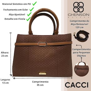 A Bolsa Chenson é o equilíbrio perfeito entre estilo e praticidade. Seu design moderno valoriza cada detalhe, tornando-a uma peça indispensável para quem busca elegância no dia a dia. Ideal para acompanhar a rotina com charme, ela combina funcionalidade e sofisticação em um visual que se adapta a diferentes ocasiões.
