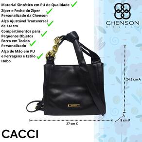 Confeccionada em PU de alta qualidade, a bolsa possui um amplo espaço interno com compartimentos que organizam seus pequenos objetos com facilidade. O forro em tecido personalizado com o logo Chenson garante um toque exclusivo, enquanto o fechamento em ecler personalizado oferece mais segurança no dia a dia. Sua alça em PU com detalhes acorrentados e estilo Hobo permite conforto e versatilidade, além de agregar elegância ao look.