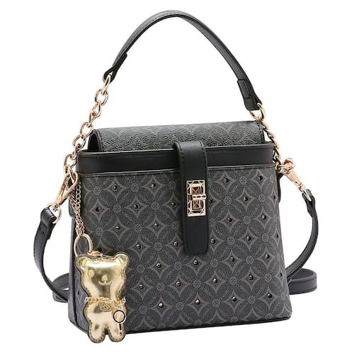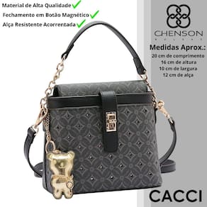 Bolsa Feminina Chenson Monograma Cristal Mão 3484186 Poliuretano, fechamento com botão magnético, forro em tecido personalizado, compartimento para pequenos objetos, 2 divisões, detalhes na frente com pedrarias e cristais, botão torção, alça acorrentada e em PVC, acabamento em costura contrastante.