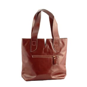 É feita à mão, possui acabamentos em dois tons de couro ,conferindo um visual sofisticado e elegante que pode ser em diversas combinações de looks. O bolso com zíper na parte de trás é ideal para guardar chaves e carteiras de forma discreta e prática. Cor: Whisky Alças: 2 fixas para ombro. Bolsos internos: 2 pequenos sem fechamento e 1 com fechamento em zíper. Bolsos externos: 1 com zíper na parte de trás. Divisórias: Não. Material: Couro . Medidas: Altura 33 cm, Largura 39 cm e Peso 600gr. Marca: Não Informado
