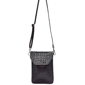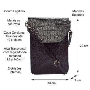 Linda bolsinha transversal, porta celular em couro, possui 2 divisões internas para levar pequenos objetos, documentos, dinheiro, cartões e seu celular. Seu fechamento na parte superior é através de botão ímã, forro de poliéster em tons neutros, metais no banho prateado. Pequena, leve, bem funcional e prática. Espaço suficiente para celulares de vários tamanhos (vide abaixo as medidas).