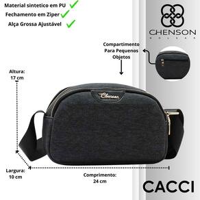 Feita em PU de alta qualidade, esta bolsa combina elegância e praticidade para o dia a dia. Com duas divisões e um compartimento especial para pequenos objetos, garantem organização e funcionalidade. O forro em tecido personalizado com o logotipo Chenson e o fechamento principal em ecler oferecem segurança e um acabamento refinado. Sua alça grossa e ajustável proporciona conforto no uso transversal, enquanto a costura contrastante valoriza o design. Para um toque extra de sofisticação, conta com um lindo detalhe e ferragens douradas, tornando o acessório ainda mais especial.