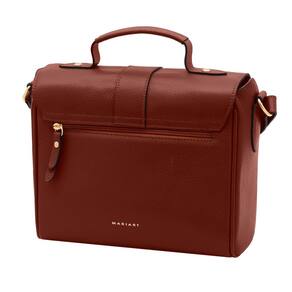 Estrutura do corpo: Construção em couro de espessura média e toque macio. Forro em sarja mista de poliéster e algodão. Logomarca destacada na parte traseira. Dimensões: 23 x 20 x 10 cm largura x altura x espessura Peso aproximado: 600 gramas Material: couro Origem: nacional; feita por mãos brasileiras