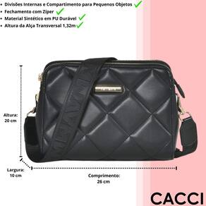 O matelassê geométrico confere um toque contemporâneo e sofisticado, enquanto os três compartimentos principais garantem organização eficiente para a rotina. Itens como celular, carteira, maquiagem e chaves encontram espaço e fácil acesso, tornando essa bolsa uma aliada indispensável para quem está sempre em movimento.