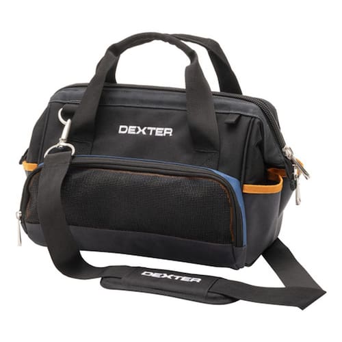 Resumo das caracteristicas do produto: - Produto: Bolsa de Ferramentas Dexter - Modelo: LT0006 - Dimensoes: 32 x 19 x 23 cm - Material: 80% Poliester, 5% Aco, 5% PP, 5% PVC, 5% PE - Fecho: Ziper em Metal - Capacidade de Peso: 14 Kg - Cor: Preto - Alcas: Externas em Tecido - Organizador Interno: Sim - Embalagem: Caixa contendo 1 Bolsa para Ferramentas - Garantia do Fabricante: 60 meses - Referencia do Produto: 2025R04P04-0006 "