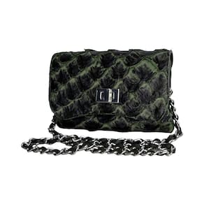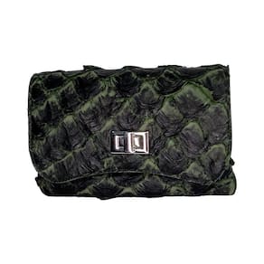 Bolsa Frank Nemeth, Modelo Letícia Confeccionada Com Pele De Pirarucu E Couro, Com 3 Divisórias, Alça De Corrente. Bolsa Frank Nemeth, modelo Letícia, confeccionada com pele de pirarucu e couro, alça de corrente destacável, com 3 divisórias interna. Marca: Frank Nemeth