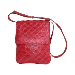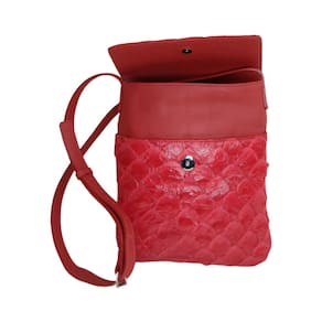 Bolsa Frank Nemeth, modelo Maria Isabel, confeccionada com pele de pirarucu e couro, com 2 divisórias interna, um bolso externo com zíper, alça transversal regulável. Dimensões: 24cm x 29cm x 3cm. Marca: Não Informado