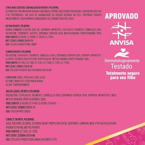 Os produtos têm um design seguro e inofensivo, porém é necessário precaução e supervisão dos pais e/ou responsáveis, em caso de sensibilidade ou ocorrência alérgica na pele, dispensar o produto imediatamente.